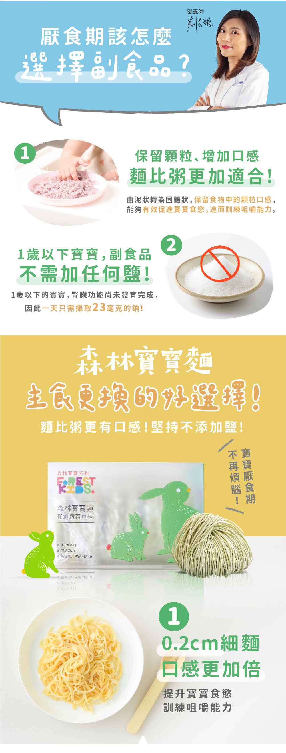 想要嘗試新的口感及味道,森林寶寶麵給媽媽們全新的餵食選擇,