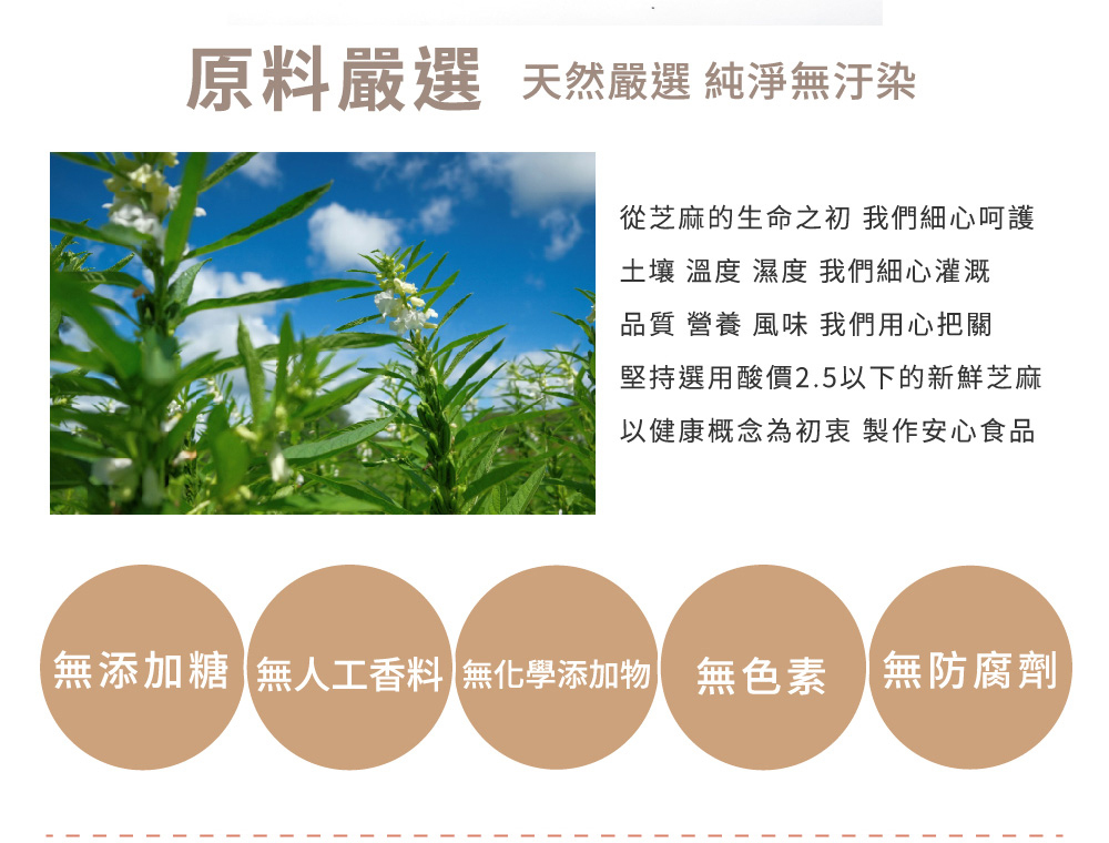 • 堅持使用酸價2.5以下新鮮芝麻