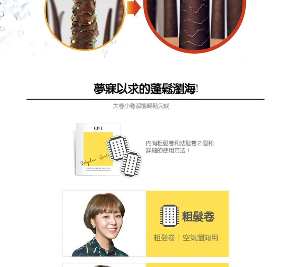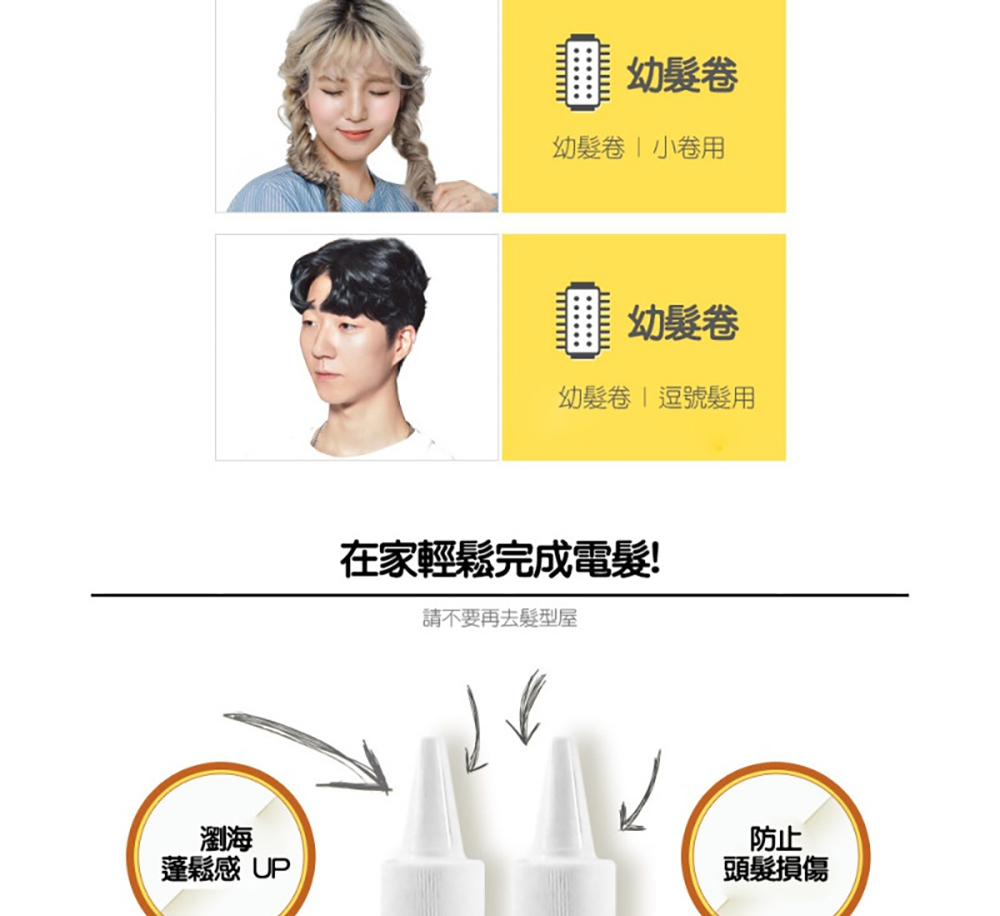 - 附兩款不同大小弧度的髮卷