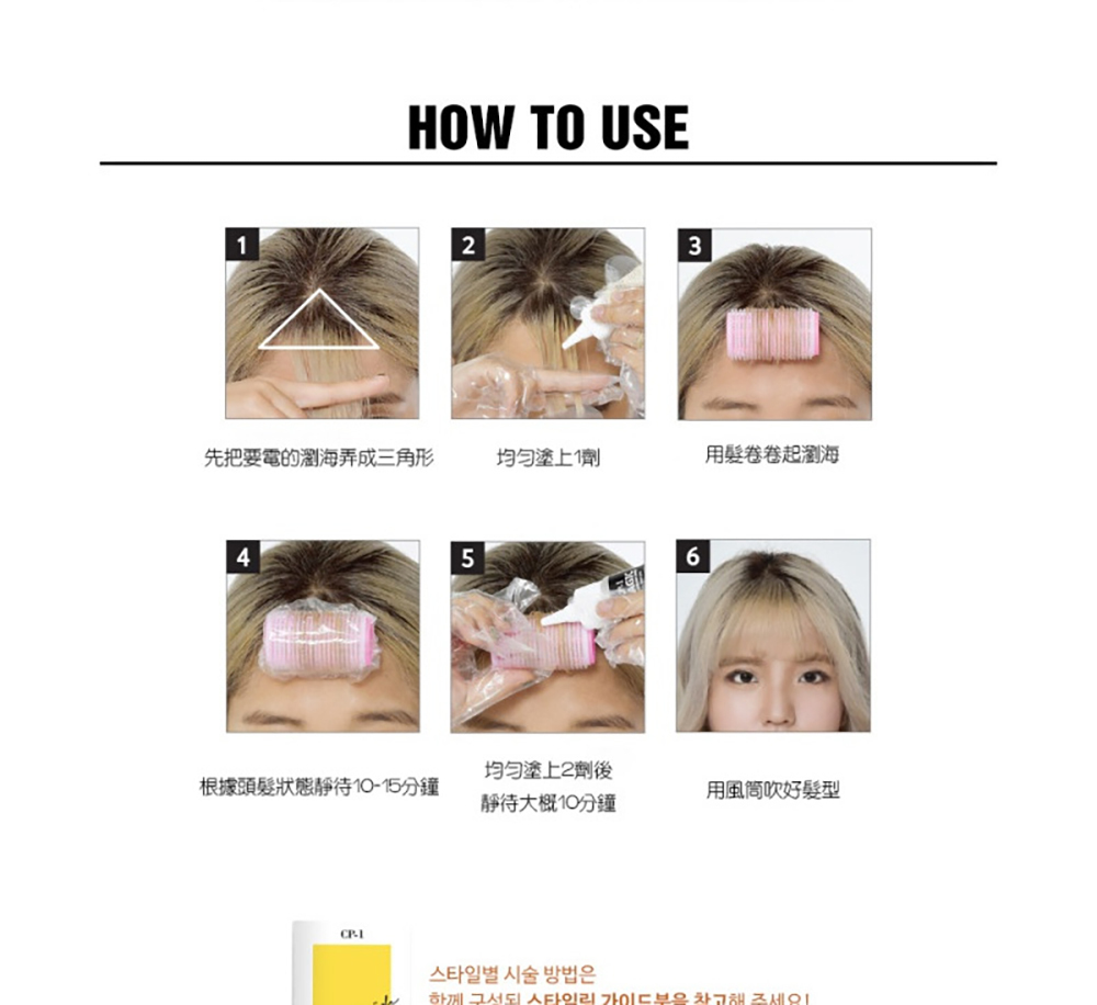 1. 將1劑塗抹在瀏海上