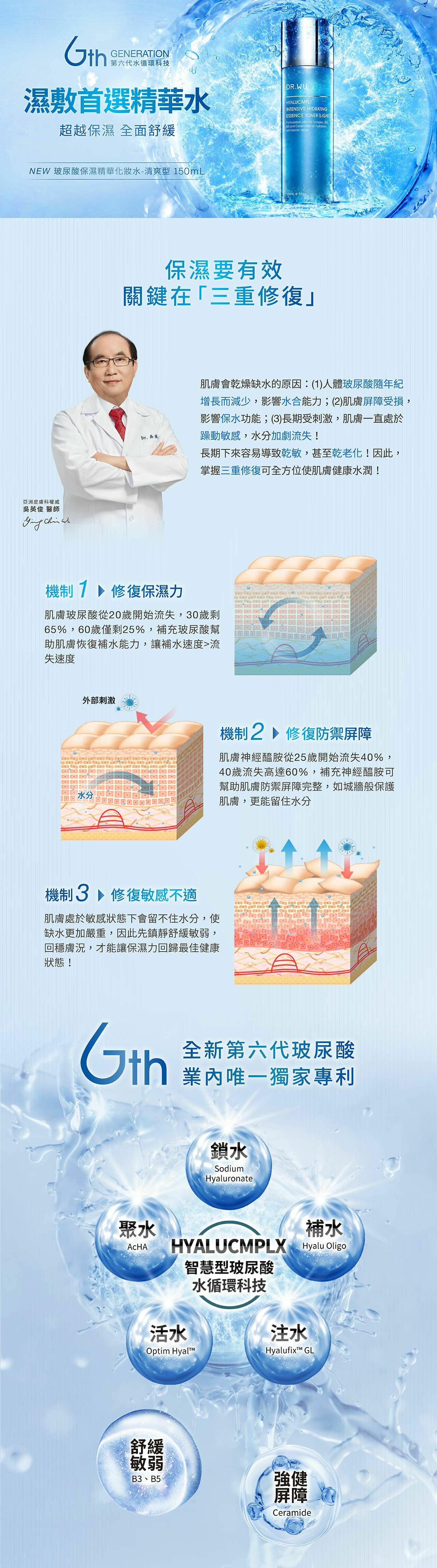 3. 全新第六代玻尿酸,提升保濕力、修復屏障,舒緩敏感不適,完美解決乾敏困擾。