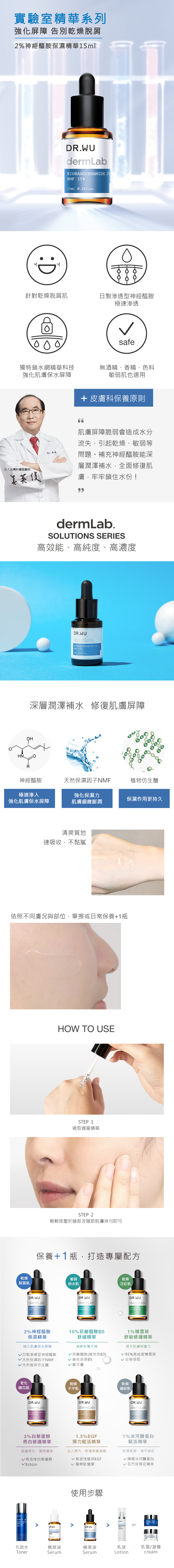 「2%神經醯胺保濕精華」採用日製滲透型神經醯胺,比一般型高出2倍滲透力,能夠深層潤澤補水;搭配天然保濕因子NMF及天然植萃仿肝生醣,深度強化保濕,加上獨特細密鎖水網精華科技,有效封存成份活性,由內而外全面強化肌膚保水屏障。質地清爽,速滲透、好吸收、不悶、不黏、不致痘,全成分不添加酒精、香精、色料、PARABEN類防腐劑,敏弱肌也適用,日常保養+1瓶,全面改善乾燥、脫屑。