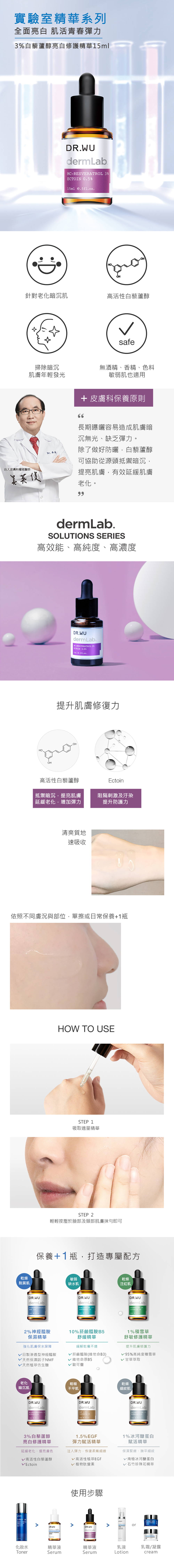 「3%白藜蘆醇亮白修護精華」採用微囊型的高活性白藜蘆醇,幫助肌膚從源頭對抗UV刺激,有效延緩肌膚老化、提亮膚色;