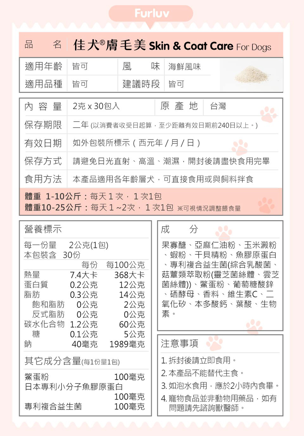 用吃的膚毛保養,幫助狗狗建立良好膚質與亮麗毛髮。