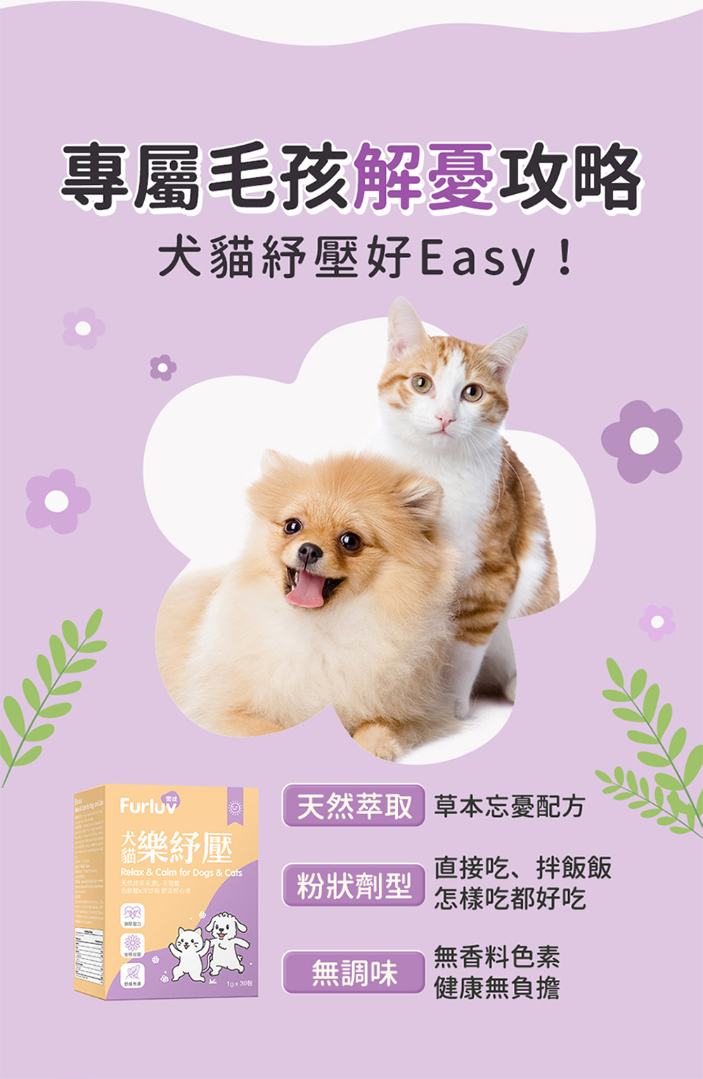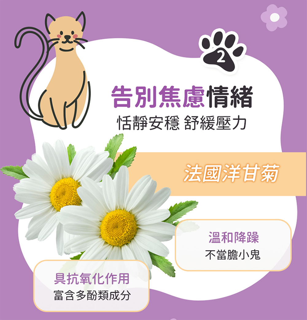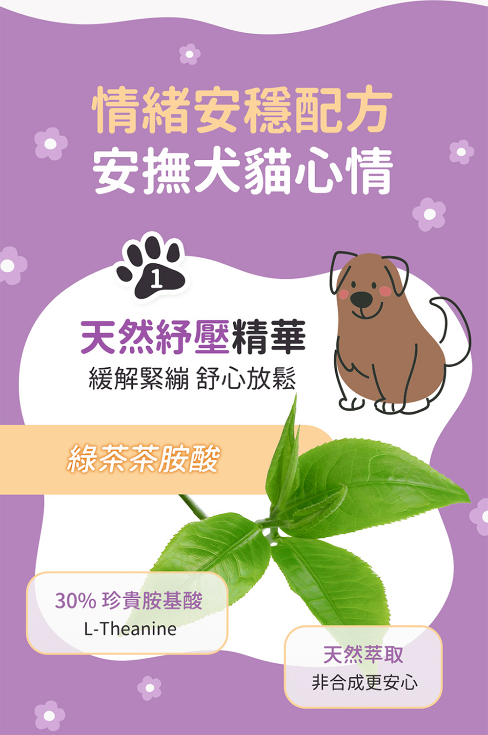 緩解緊繃狀態,幫助毛孩穩定情緒,平和自在。