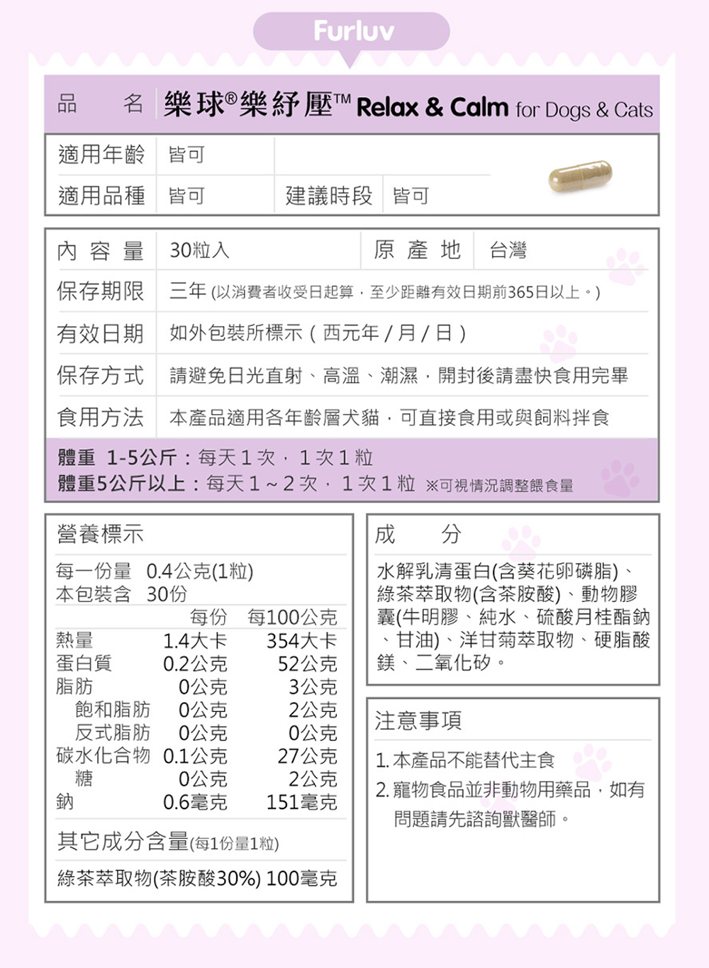 可作為日常情緒保健,也特别推薦即將遠行、看醫生、長期獨處的毛孩食用。