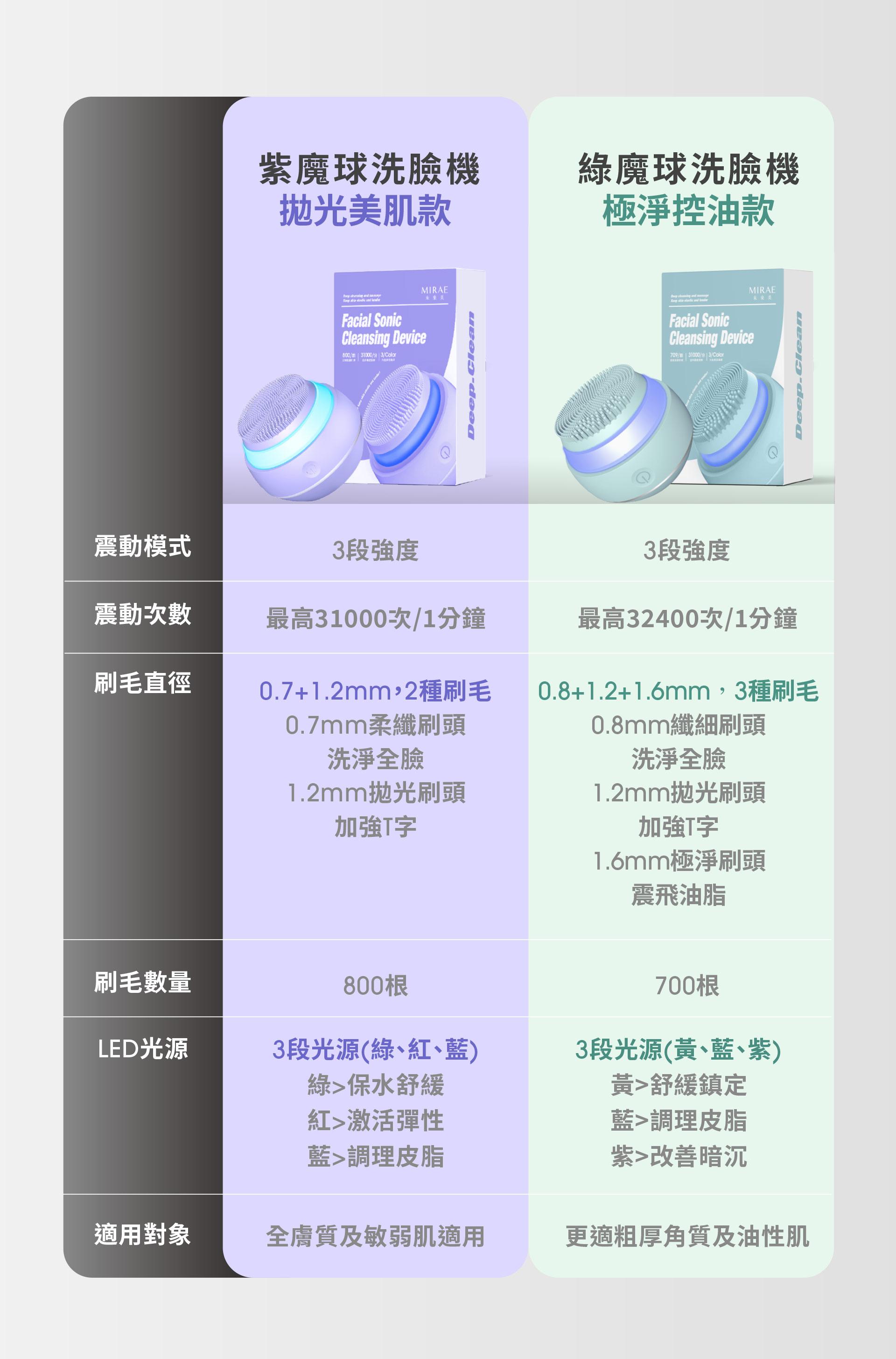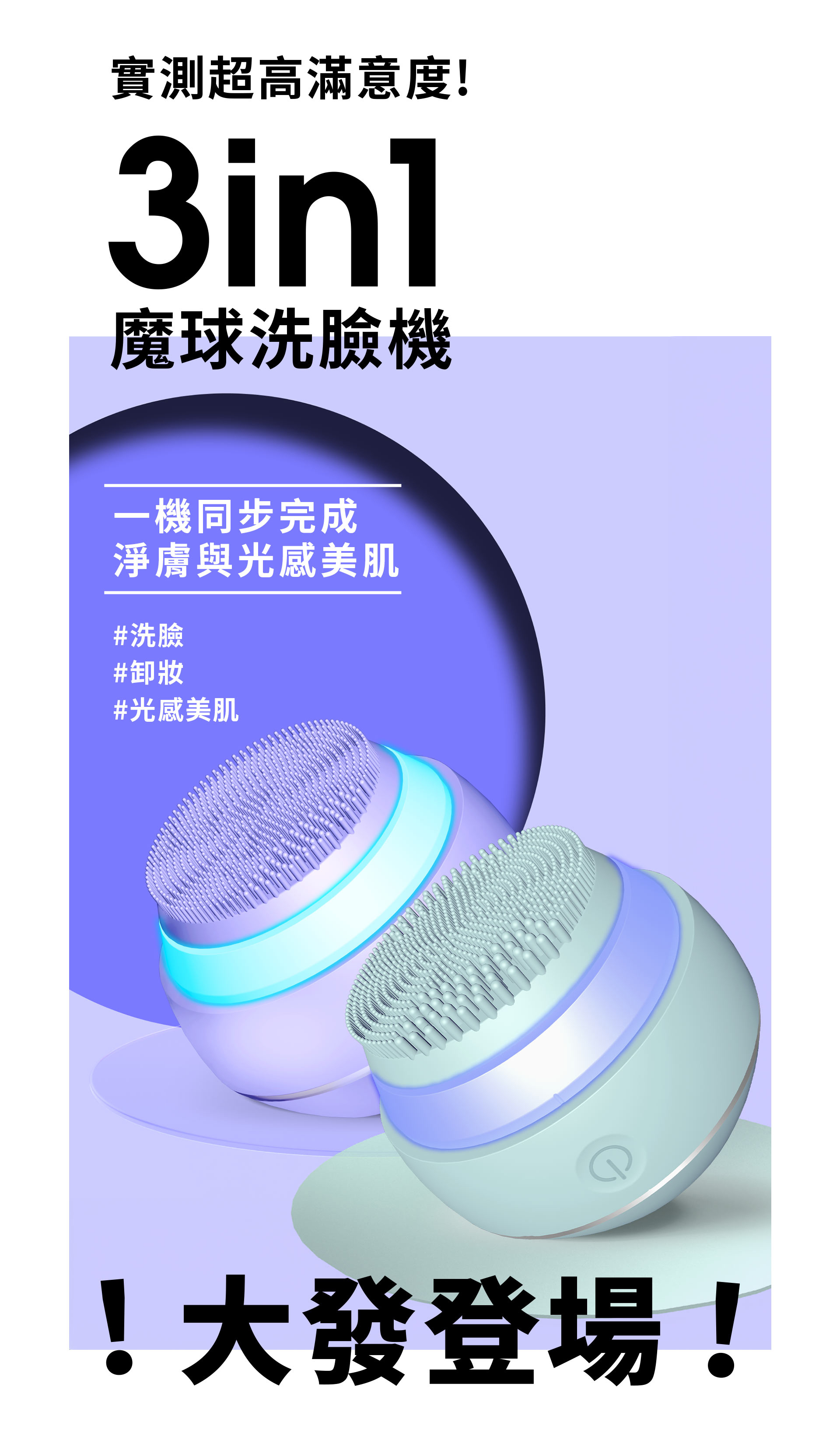 三段清潔震度+三色光感美肌,一機可用來卸妝/洗臉/光感美肌。