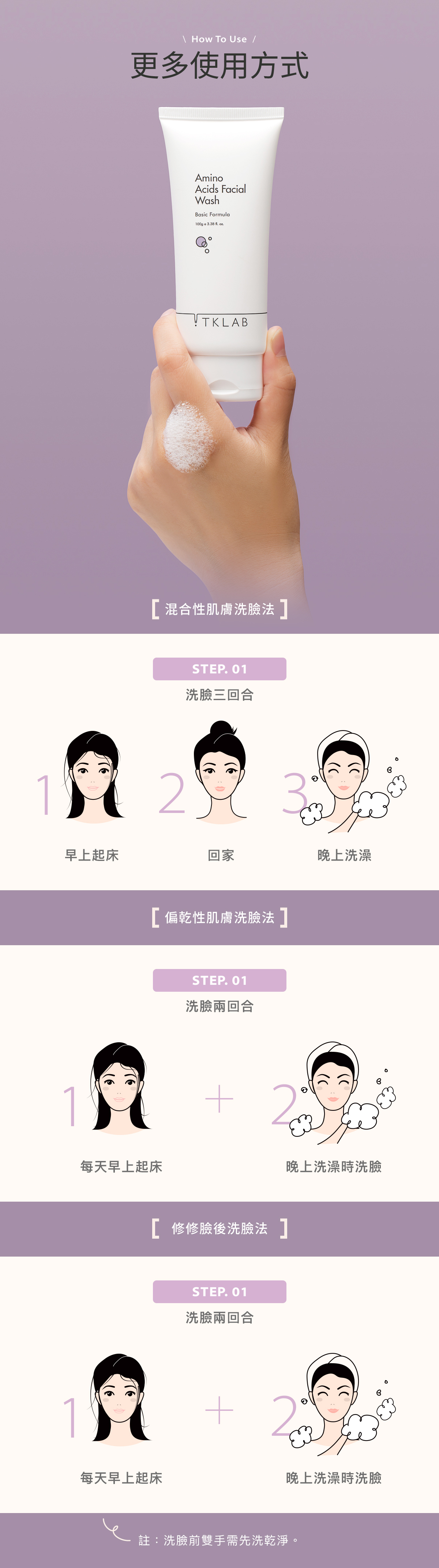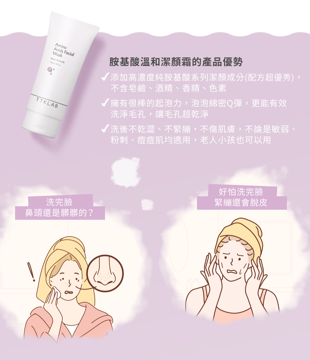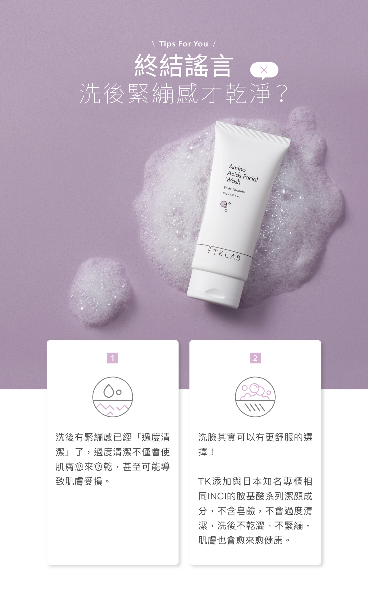 TKLAB的氨基酸潔顏霜,能夠洗淨髒污,又不會造成過度清潔。