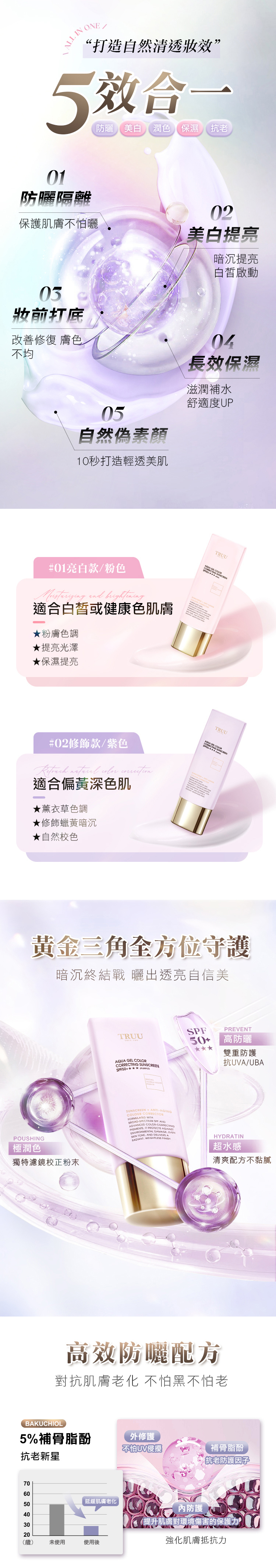 TRUU高水感亮顏校色防曬乳SPF50+★★★(紫色)50ml