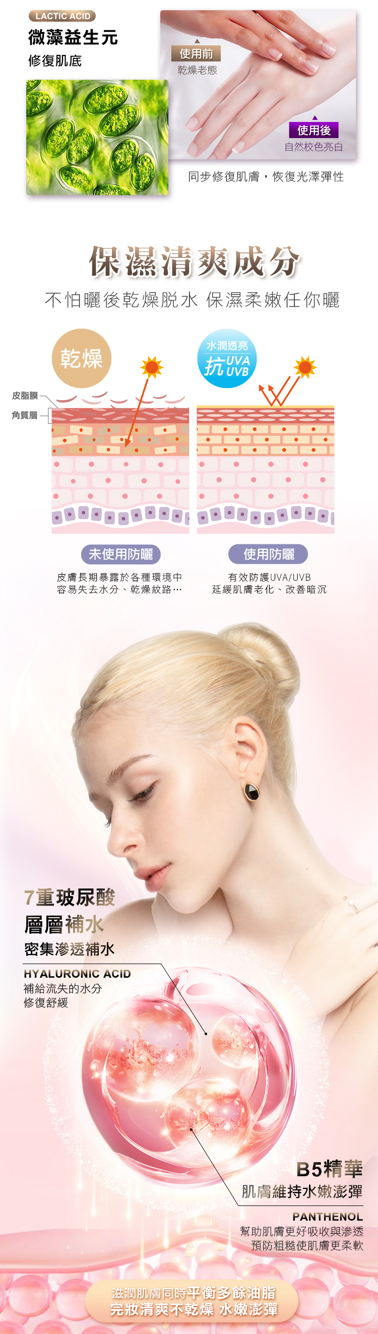 • |不僅防曬,更提高保養規格,抗老修復、美白保養|