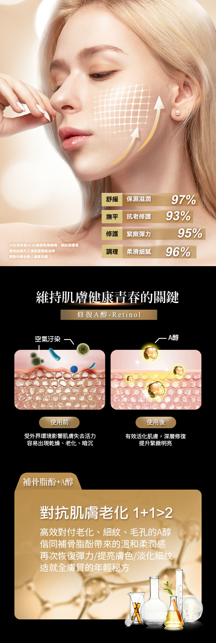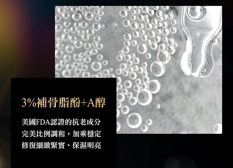 專業級抗老成分-3%補骨脂酚、A醇精華。