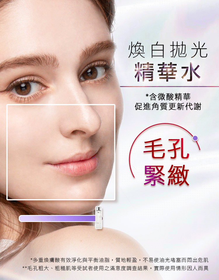 • 完勝毛孔瑕疵,天天淨、透、亮!