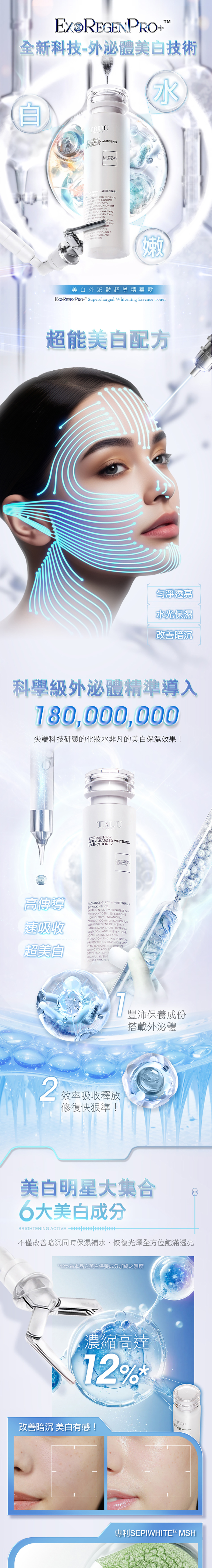 外泌體美白科技 × 專利SEPIWHITE™ MSH,高效無瑕透亮。