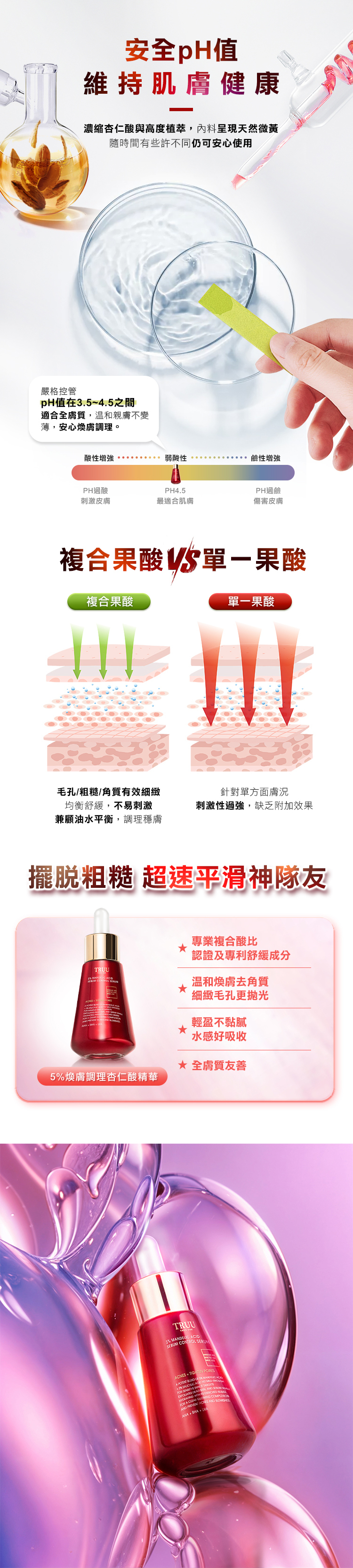 溫和有效成分,杏仁酸+水楊酸調理,有效煥膚不易刺激。