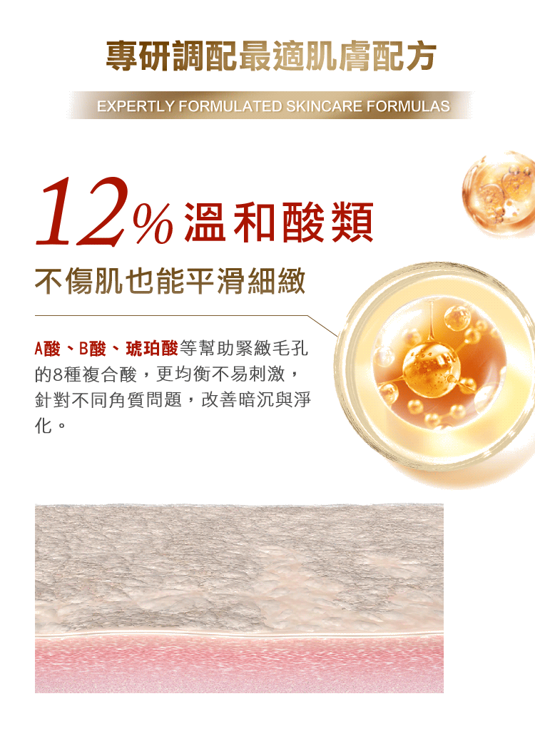 ★12%溫和酸類|促進角質更新代謝,細緻肌膚,通暢毛孔