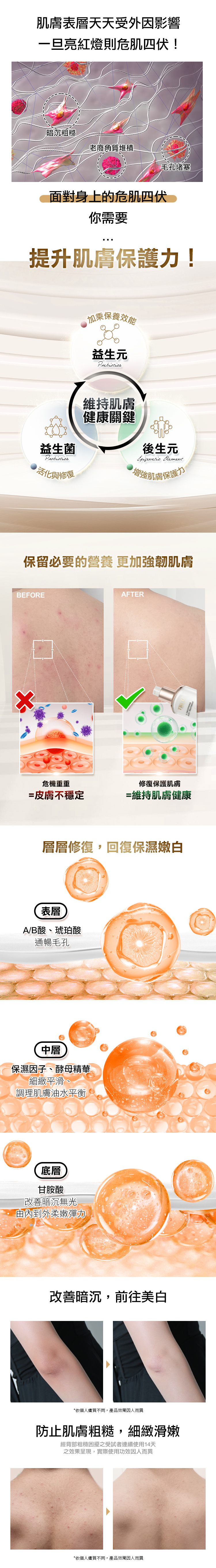 維持肌膚健康,改善暗沉恢復彈性,令肌膚保濕嫩白滑順。