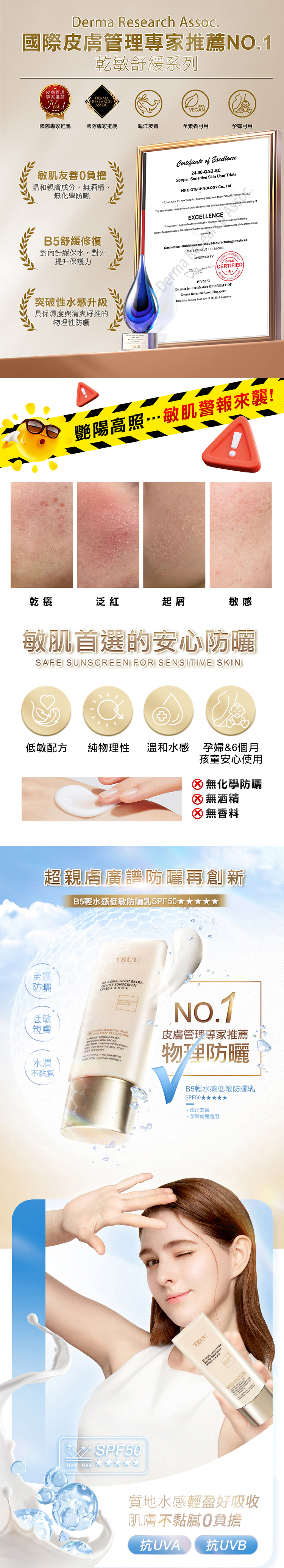 全護防曬、低敏親膚、水潤不黏膩。