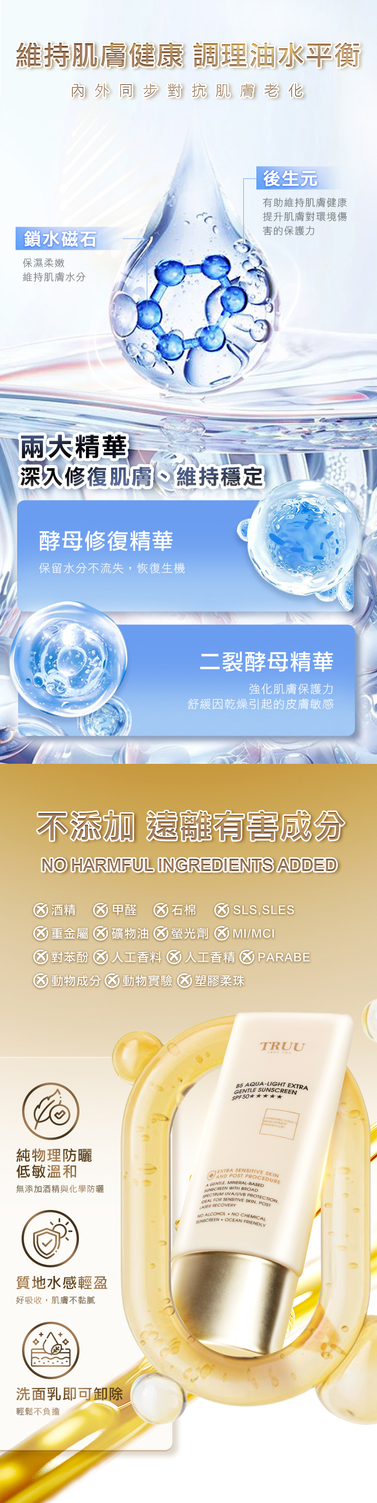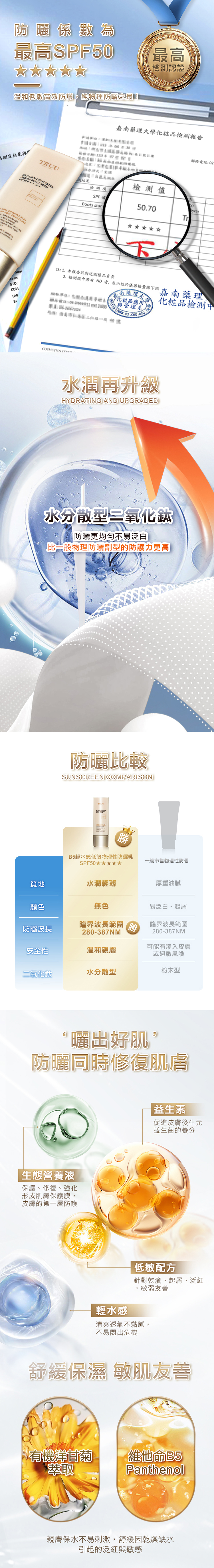 全護防曬、低敏親膚、水潤不黏膩。