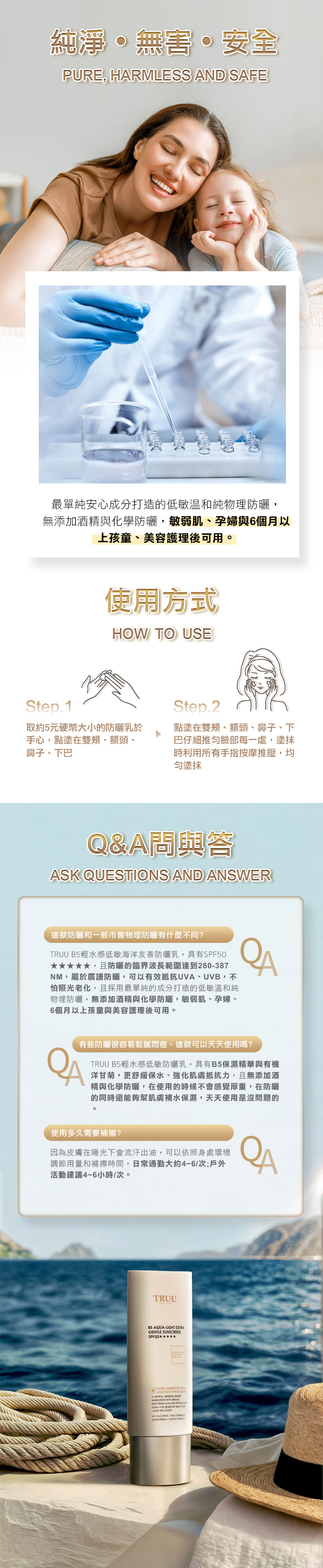 低敏全物理防曬,海洋友善配方。