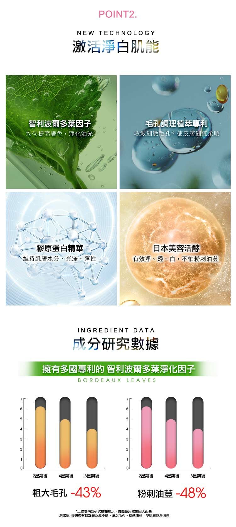 • 一淨、二透、三美白!對付油光、粗糙、暗沉。